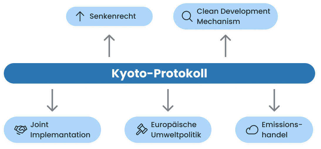 Um den Industrieländern das Erreichen ihrer Emissionsziele zu erleichtern, führte das Kyoto-Protokoll drei flexible, marktbasierte Mechanismen ein. Diese ermöglichten es, Emissionsminderungen auch außerhalb des eigenen Landes zu erzielen: